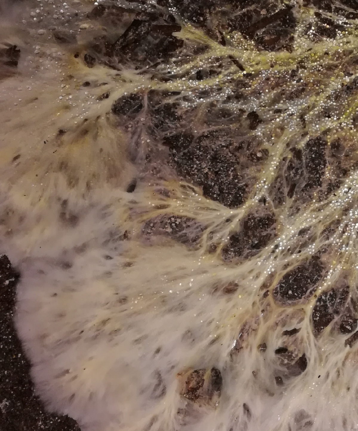- former un réseau de filaments appelé mycélium, qui peut se propager à travers le bois et d'autres matériaux de construction. Cela peut créer une toile dense et difficile à détruire à l'intérieur des murs