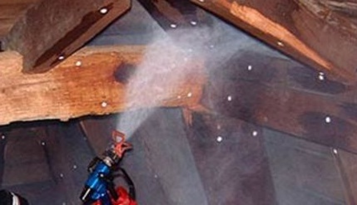 - perçage des bois et injections d’insecticide dans les trous préalablement forés dans les poutres